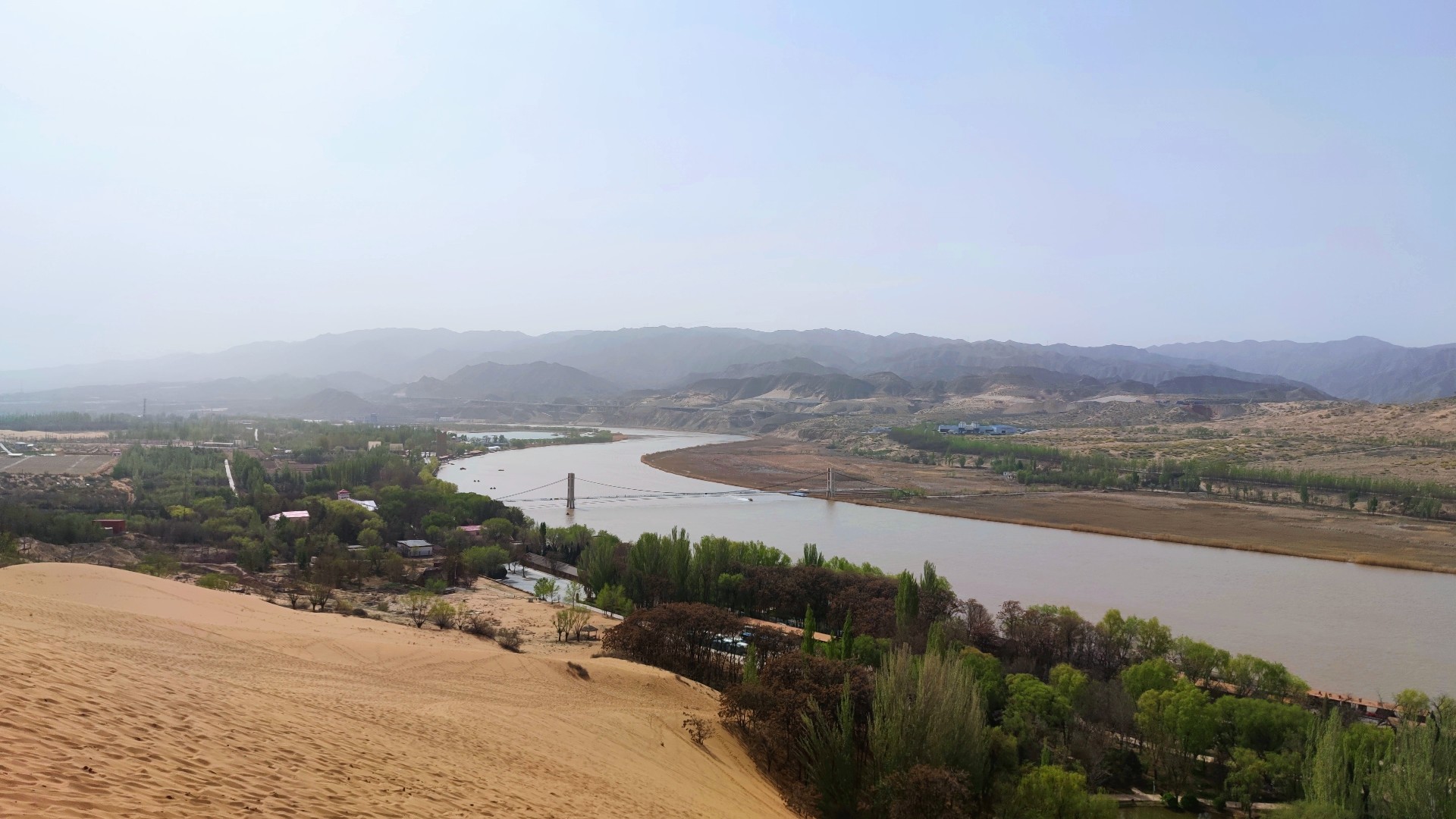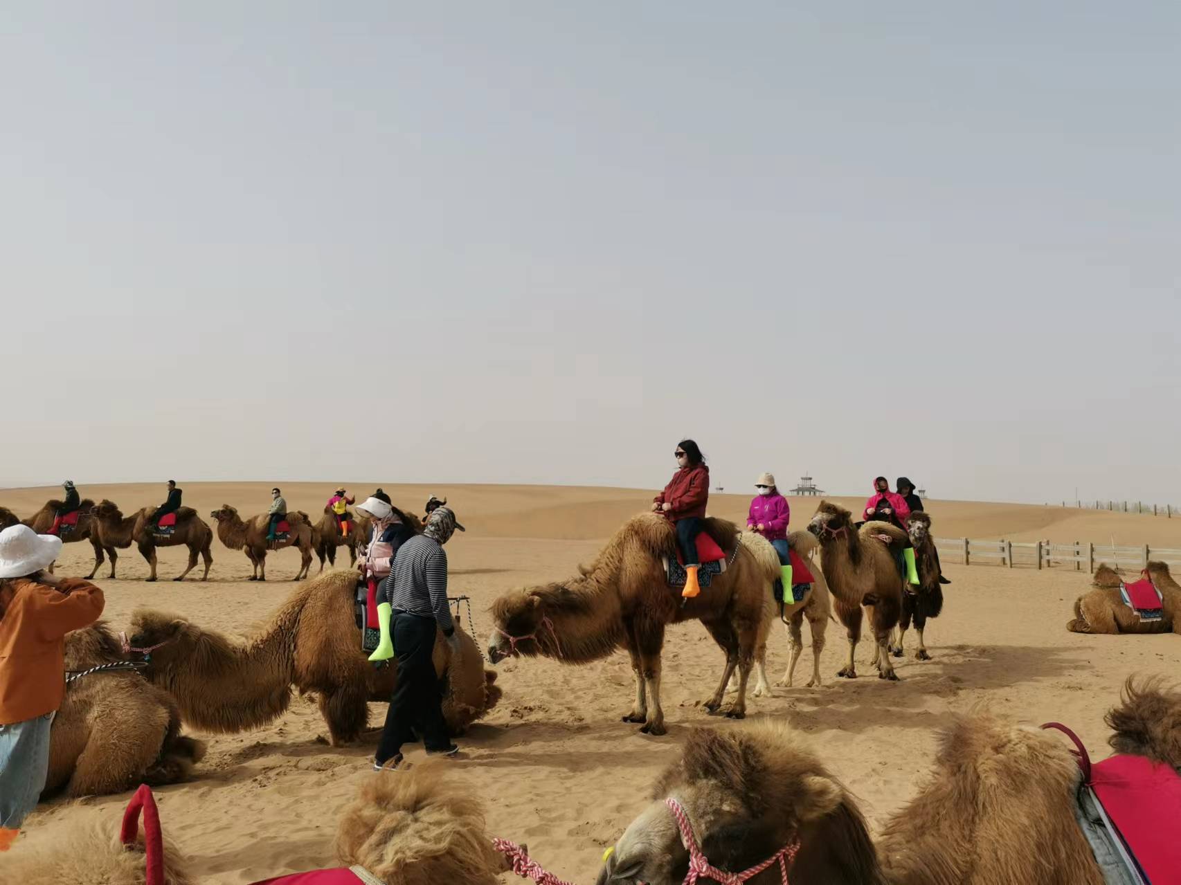 第四天去沙坡頭體驗(yàn)一下王維詩(shī)中大漠孤煙直,長(zhǎng)河落日?qǐng)A的壯觀,感受沙漠的浩瀚與雄偉壯闊,坐著羊皮筏子暢游了母親河-黃河。